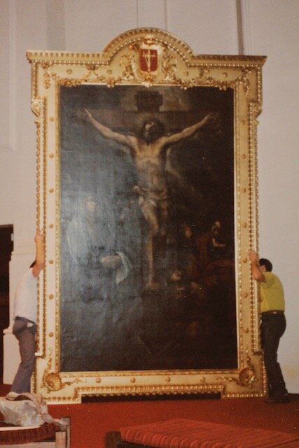 This acclaimed piece ‘The Crucifixion’ is dated 1670 and is by Spanish Artist Juan DeLos Reolos. Restoration of the painting and the massive frame made by the famous Victorian maker John Thallon standing over 5 meters in height included: