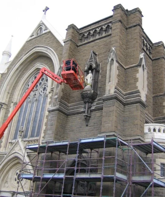 Positioned high on the façade of St Mary’s West Melb this important statue was in a very sad state of condition. Works carried out were: